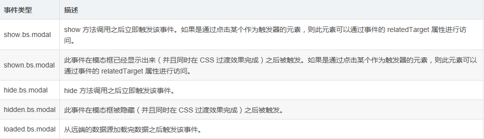 Bootstrap 的模态框类提供了一些事件用于监听并执行你自己的代码。